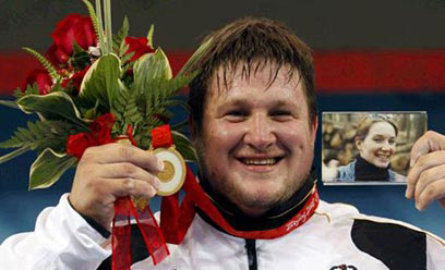 四年前,施泰纳的妻子苏珊在奥运会前因车祸过世,而他在获得北京奥运会的金牌后,登上领奖台时举着亡妻的照片,这一幕感动了无数的人。