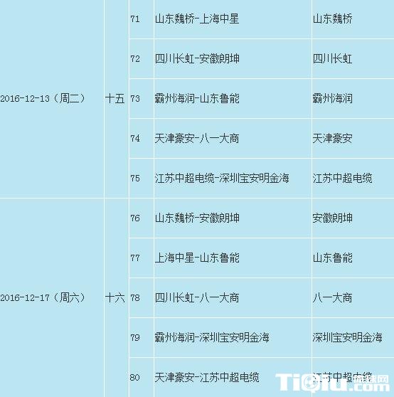 2016/12/31 16:14乒超联赛