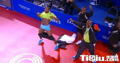 脱裤庆祝时间是发生在之前结束的男子团体铜牌战比赛中,由尼日利亚队对阵印度队,最终尼日利亚队爆冷战胜印度队,夺得男子团体赛的铜牌,赛后,表现不错的尼日利亚选手昂奥拉波-奥约先是脱下自己的裤子至膝盖处,随后又掀起衣服表示庆祝,对于他的这一动作,大家都显得有点摸不着头脑。
