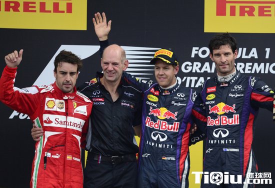 综合体育 时间:2013-09-09 16:27来源:http://zonghe.tiqiu.com编辑:筱博扬【导读】昨天晚上20:00,F1意大利站在蒙扎赛道落下帷幕。杆位起跑的维特尔一发不可收拾,一路领跑到底。阿隆索第二圈超越韦伯,夺得亚军。莱科宁则因为前翼受损,最终只获得第11名,没能取得积分。