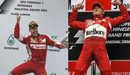 北京时间12月25日消息 有着“小舒马赫”昵称的维特尔在法拉利的第一年取得了不错的开始,他是否已经踏上复制自己偶像的道路?法拉利领队毛里齐奥·阿里瓦贝内说:“很多时候看着维特尔,他真的就像一个复制出来的舒马赫,对认识他们俩的人来说,能发现他们惊人的相似处。我们希望他们最终带来的成绩也一样。”...