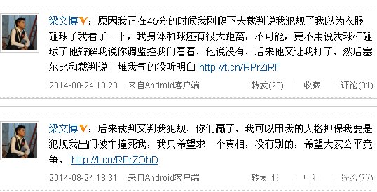 随后,梁文博也进一步解释和道歉说:“想取得一个好成绩算是给老人家最后的安慰和告别,但没想到会因为裁判误判导致原本有机会赢的比赛提前出局,因此太郁闷也太愤怒了。才会冲动之下发了不冷静的言论,请球迷谅解!也希望爷爷可以一路走好!”