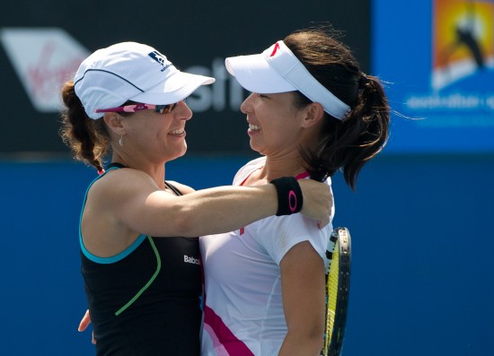年初合作打进澳网四强的郑赛赛和勒普琴科继续不俗的表现,她们在3号球场直落两盘淘汰了库德利亚夫塞娃/罗迪奥诺娃的组合。郑赛赛/勒普琴科在第一盘争夺里率先破发,但库德利亚夫塞娃/罗迪奥诺娃于第8局反破并将比分追平,随后双方僵持到抢七,郑赛赛/乐普琴科凭借更加稳定的发挥锁定抢七和首盘胜利。