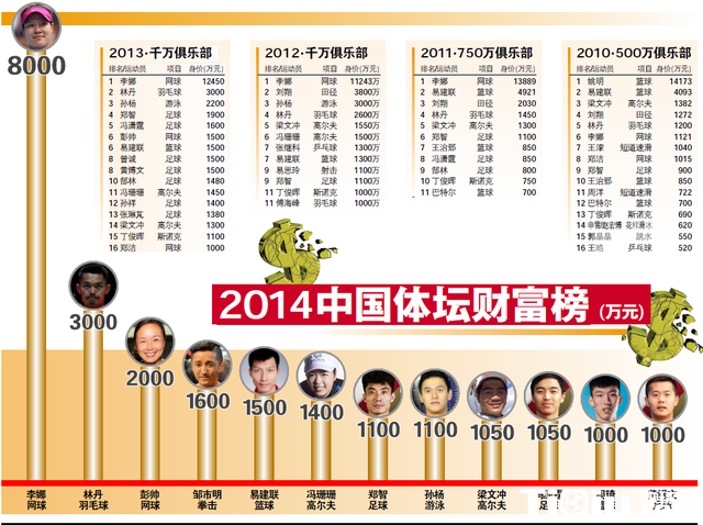 【导读】单单从数字上来看,2014中国体坛财富榜几乎是一份平淡甚至平庸的榜单。