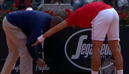 由于下雨,场地非常湿滑,德约科维奇希望教练可以暂停比赛,因为小德认为场地的湿滑很容易让球员受伤。...