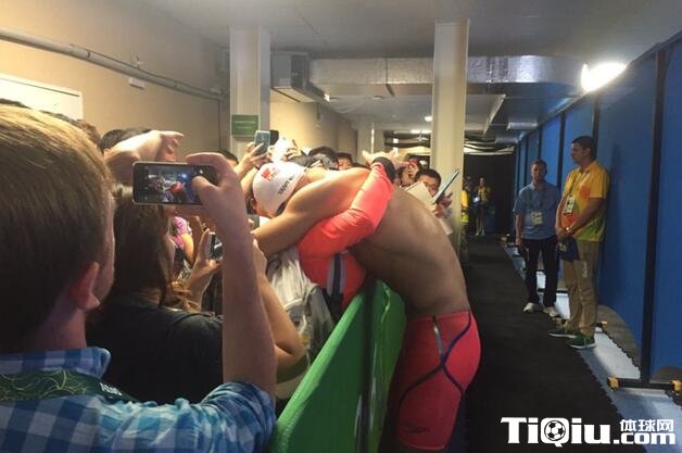 再往前走,看到另一波人群中熟识的记者,孙杨再也忍不住。走到一位一直跟随他报道的媒体前辈面前,听到记者心疼的说:“孙杨,你已经非常棒了!”他再也掩饰不住自己的
