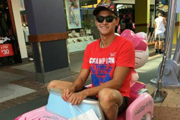 孙杨坐摇摇车卖萌装嫩 网友:坐坏了要赔的