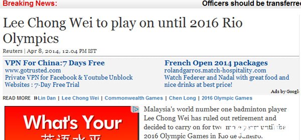 里约是李宗伟最后黄金机会 名宿赞宗伟是大马最好球