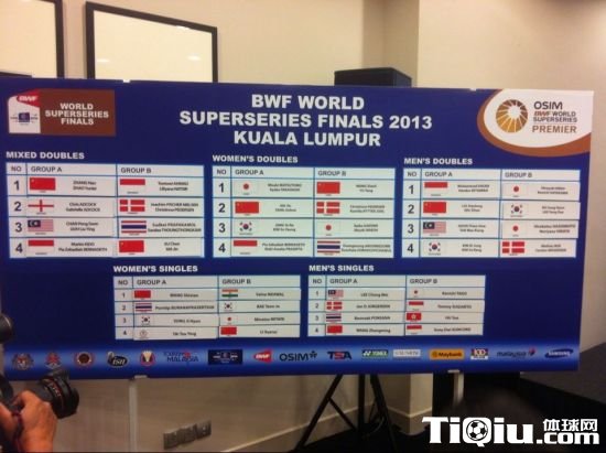 12月11日,2013羽毛球超级赛总决赛即将在马来西亚打响。于今日在马来西亚的吉隆坡进行分组抽签仪式。国羽方面,男单王睁茗与大马一哥李宗伟同处A组,女单王适娴和李雪芮被分在A组和B组,王适娴晋级最大的对手是韩国女单一姐成池铉,而李雪芮则是遭遇印度强手内瓦尔。